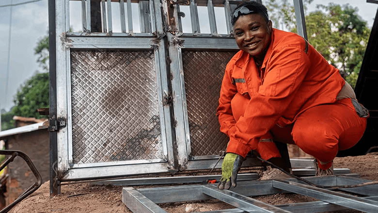 Carpenter Djaraf using the electric plug for his works. Credit: LayeproPhotos / World Bank.